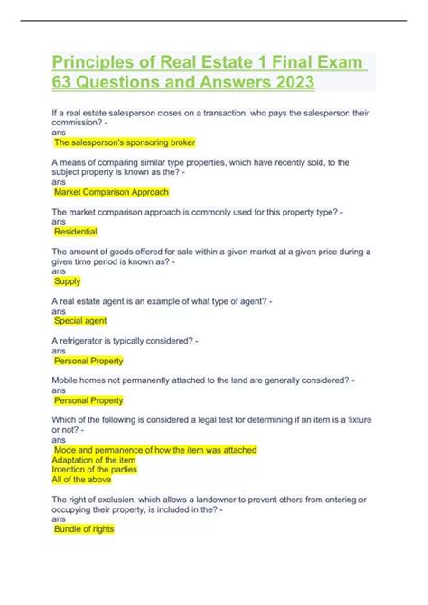 Download online REAL ESTATE PRINCIPLES TEST ANSWERS Doc BookBoon